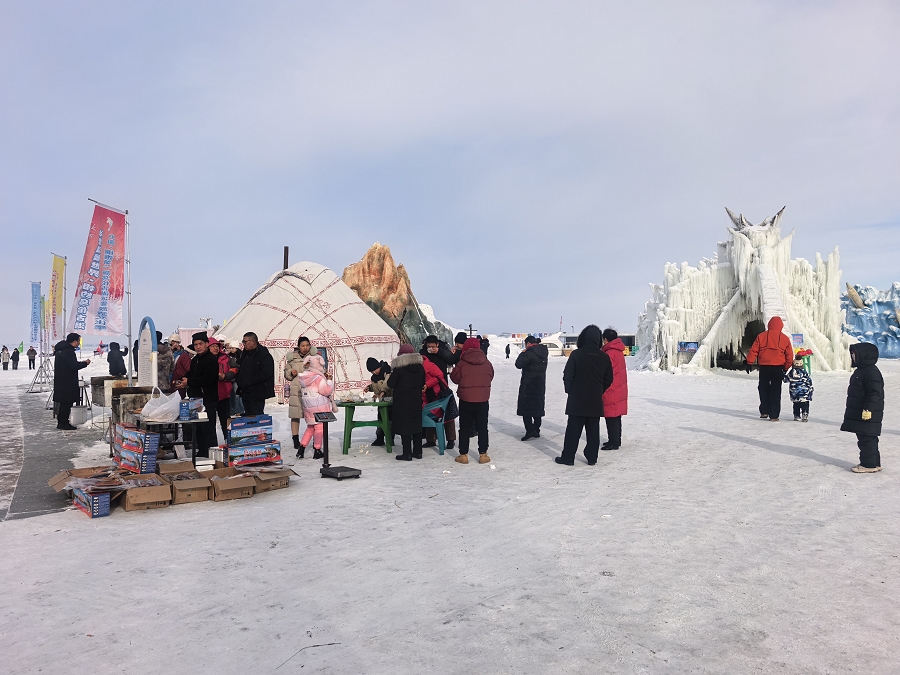 作为福海县核心文旅阵地,黄金海岸景区深挖“冰雪+”融合潜力,完善多元业态布局。景区联合解特阿热勒镇打造特色住宿区,冰雪主题民宿温暖舒适,推窗即可望见银装素裹的湖景;全鱼宴现场烹饪多种冷水鱼,炭烤风干狗鱼、鲜炖鱼汤等特色美食,让游客品尝从冰湖到餐桌的极致新鲜。