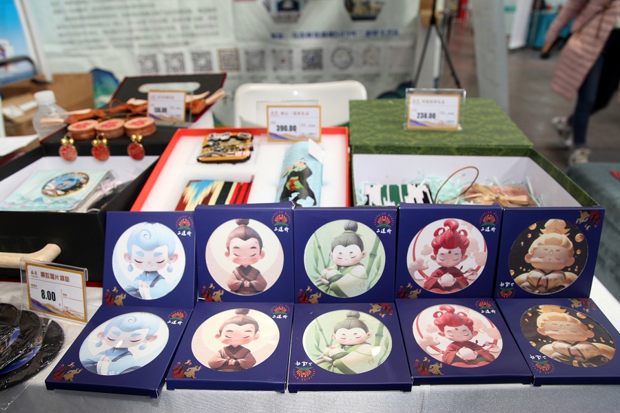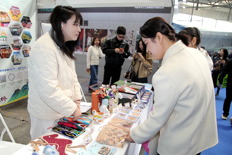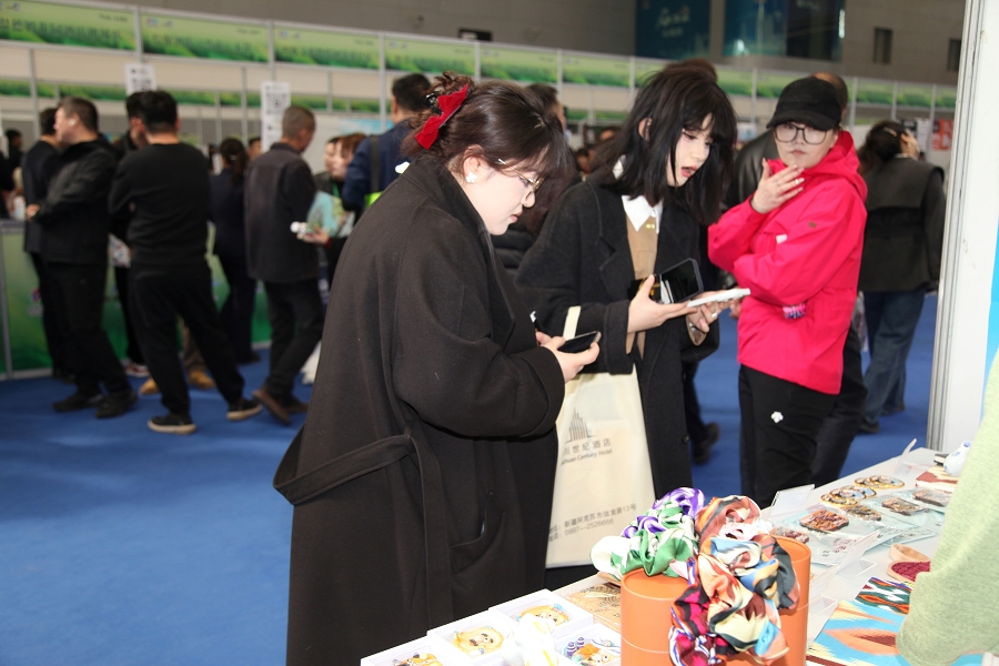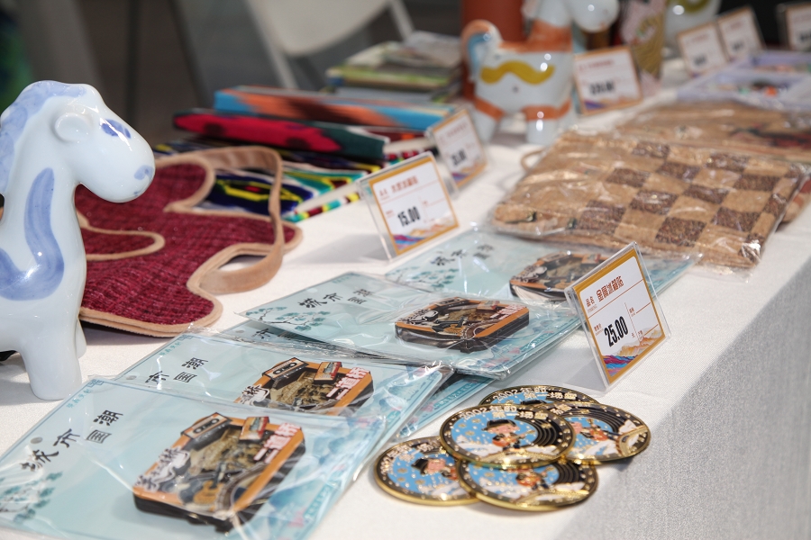 在二道桥文旅集团展区,文创产品涵盖有家居装饰、日常用品、非遗手作等多个品类,通过木质、金属、树脂、硅藻泥等多元材质,将新疆民俗文化元素与现代审美需求巧妙融合,有效打破非遗“老古董”的刻板印象,让千年技艺成为可带走、可使用的生活艺术品。现场陈列的特色产品包括:融合地域文化的冰箱贴系列——木质二道桥怀旧款、金属质感“2002年的第一场雪”主题款;黑胶唱片造型树脂杯垫、环保硅藻泥五行杯垫;复刻哈孜·艾买提名画《歌舞之乡》的艺术陶瓷保温杯、新疆桑树皮材质软木包;非遗软陶冰箱贴、艾德莱斯绸系列笔记本与发圈、手工皮制小马挂件、锡伯族刺绣背包,以及与石河子大学合作开发的非遗土陶手绘瓷马驹等。丰富的产品吸引了参展商与观众驻足观赏、咨询洽谈。展会期间,集团同步开展合作对接与市场调研,与各地文旅企业、非遗传承人深入交流,为后续文创产品创新及文旅产业融合储备优质资源,有效达成“以展促销、展销结合、合作共赢”的参展目标。