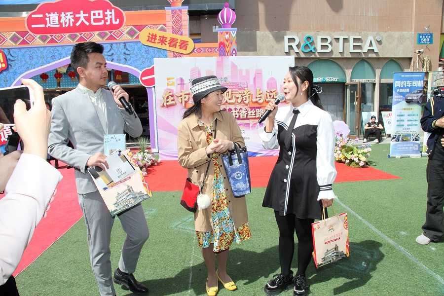 本次快闪活动为百年巴扎注入全新文化活力。活动期间,现场游客纷纷驻足参与,被歌舞与诵读吸引而停留,在互动答题后沉浸式感受二道桥大巴扎的丝路风情,共同绘就了一幅文化与生活交融的生动图景。