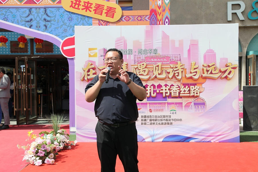 四月的乌鲁木齐,春风漫过天山脚下,拂过丝路古道的百年商埠。4月16日,以“文润丝路・阅启华章——墨香巴扎・书香丝路”为主题的文化快闪活动,在烟火升腾的二道桥大巴扎启幕。本次活动由新疆维吾尔自治区图书馆主办,新疆广播电视台929文化旅游广播、新疆二道桥文旅集团联合承办,以文为桥、以乐为脉,在市集烟火中铺展书香画卷,为往来游客与市民献上了一场文化与欢乐交融的春日盛宴。