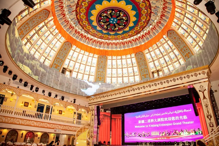 12月11日晚,二道桥大剧院鼓乐铿锵,一场融汇千年丝路文脉与多民族风情的沉浸式民族婚礼盛典在此震撼启幕。二道桥大剧院以“幸福从二道桥启航”为核心主题,将新疆多元民族婚庆文化的精髓与特色美食、互动狂欢深度融合,近200位嘉宾齐聚这座千年丝绸之路的重要节点,沉浸式体验新疆文旅的独特魅力,见证丝路婚礼的千年浪漫与“幸福起点”的鲜活炽热。