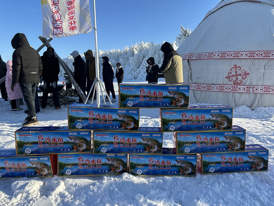 作为福海县核心文旅阵地,黄金海岸景区深挖“冰雪+”融合潜力,完善多元业态布局。景区联合解特阿热勒镇打造特色住宿区,冰雪主题民宿温暖舒适,推窗即可望见银装素裹的湖景;全鱼宴现场烹饪多种冷水鱼,炭烤风干狗鱼、鲜炖鱼汤等特色美食,让游客品尝从冰湖到餐桌的极致新鲜。