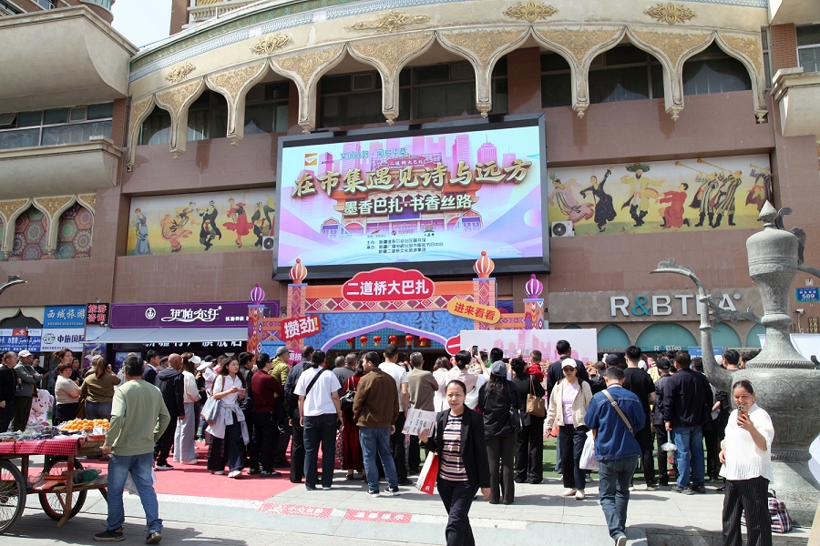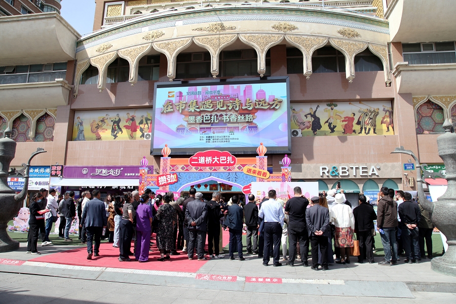 四月的乌鲁木齐,春风漫过天山脚下,拂过丝路古道的百年商埠。4月16日,以“文润丝路・阅启华章——墨香巴扎・书香丝路”为主题的文化快闪活动,在烟火升腾的二道桥大巴扎启幕。本次活动由新疆维吾尔自治区图书馆主办,新疆广播电视台929文化旅游广播、新疆二道桥文旅集团联合承办,以文为桥、以乐为脉,在市集烟火中铺展书香画卷,为往来游客与市民献上了一场文化与欢乐交融的春日盛宴。